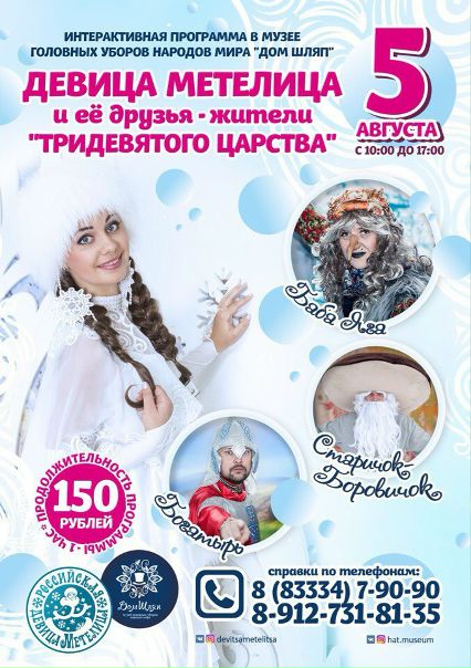 5 августа в Музее "Дом Шляп" вы можете познакомиться с друзьями Девицы Метелицы из "Тридевятого царства"! ????